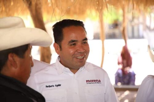Junto a su compañera de fórmula, Lorenia Valle Sampedro, Aguilar Castillo resaltó en la ramada que la Cuarta Transformación ha luchado por hacer justicia a los pueblos indígenas.