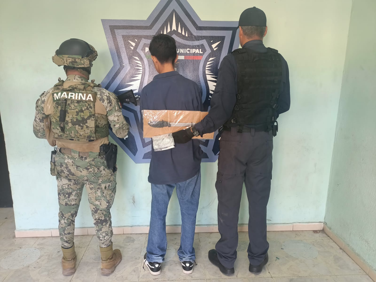 Derivado de los operativos de inteligencia implementados por el Grupo de Investigaciones de la Policía Municipal en coordinación con Marina, se logró la aprehensión en la colonia Las Fuentes, de Jesús Javier “N.”, de 15 años de edad, por la presunta comisión del delito de portación de arma prohibida.