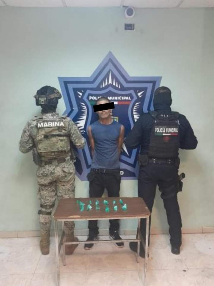 La detención ocurrió mientras la Policía Municipal y Marina realizaban patrullajes, alrededor de las 20:55 horas, por la calle Terrazas y Guzmán de mencionado asentamiento urbano.