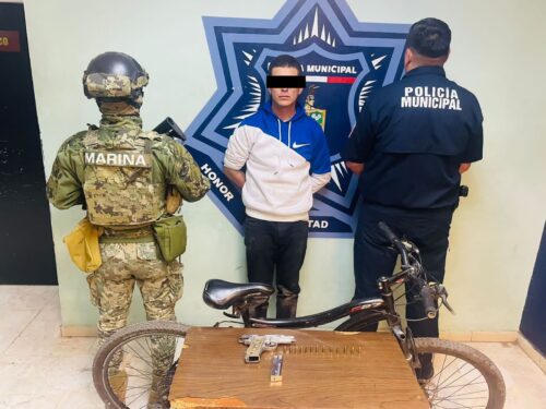 En dos operativos realizados en las colonias Matías Méndez y Del Valle, oficiales de la Secretaría de Seguridad Pública Municipal y Marina, detuvieron a dos sujetos, logrando asegurar un arma de fuego corta con diversos cartuchos y un arma blanca tipo machete.