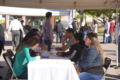 El Secretario de Desarrollo Económico, Fernando Durazo Picos reconoció la gran convocatoria que se observó tanto en el área frente a palacio municipal, como en los estands que, para el mismo fin, se instalaron las calles Ejército Nacional y Norman E. Borlaug, de la colonia Primavera, donde acudieron cientos de personas en busca de ocupar alguna de las vacantes que se expusieron durante este evento.