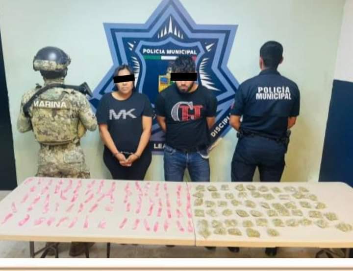 Más de 150 envoltorios de drogas fueron decomisados en operativos conjuntos efectuados al oriente de la Ciudad, por elementos de la Secretaría de Seguridad Pública Municipal y Marina, logrando la detención de dos hombres y dos mujeres, quienes fueron vinculados por el presunto delito en contra de la salud.