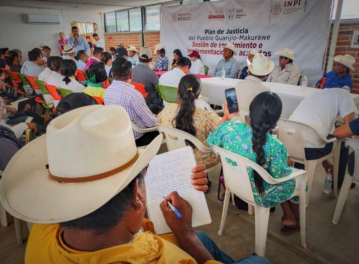En la mesa de trabajo del Plan de Justicia Guarijío-Makurawe participaron los gobernadores tradicionales de las localidades de Los Estrados, Los Jacales, San José, Mesa Colorada, Los Bajíos, Los Estrados y Makurawe del pueblo guarijío; así como Violeta Hernández Andrés por parte del gobierno de México a través del INPI; y la titular de Sedesson, quien también coordina este Plan de Justicia, en representación del gobernador del estado.