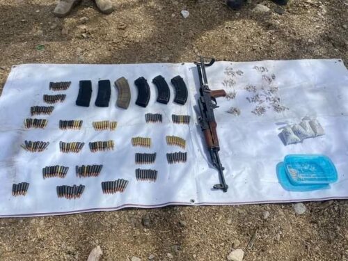 De acuerdo con el informe de las autoridades, en recorridos de vigilancia en las áreas mencionadas, se encontraron siete armas largas, 126 dosis de heroína, cinco mil 820 pastillas de fentanilo, tres artefactos explosivos improvisados, los cuales fueron destruidos en el lugar de los hechos por el método de incineración.