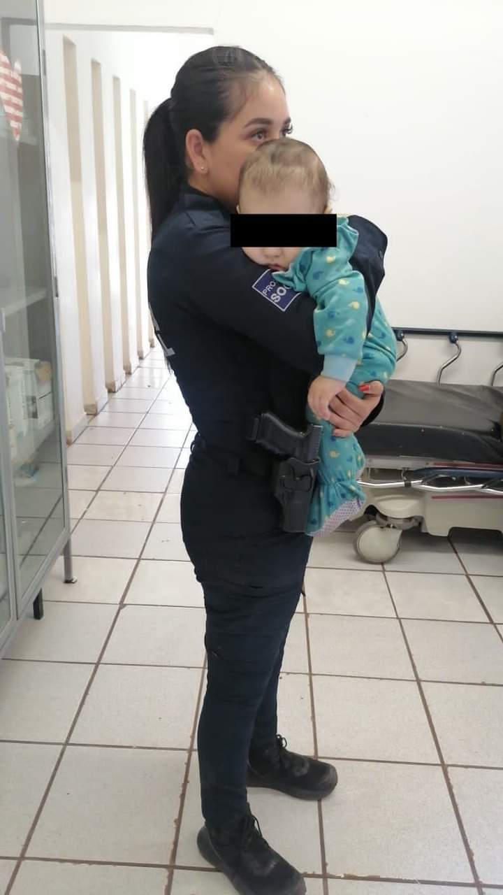 Deteniendo su marcha de inmediato, para acercarse a dialogar con una mujer, quien les informó que su hijo Dylan Santiago de 9 meses de edad, presentaba problemas para respirar, actuando de forma rápida la Policía Dulce María Yanet Zazueta Mercado, brindándole primeros auxilios y procediendo con el traslado del menor en la unidad policial a Cruz Roja.