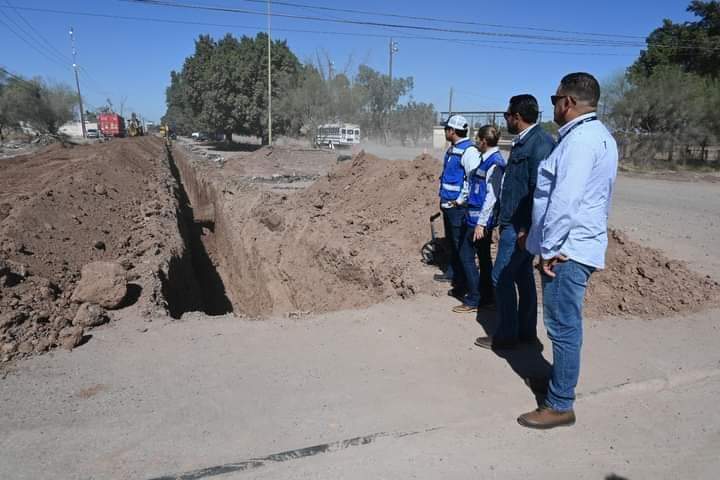 Directivos del OOMAPAS de Cajeme supervisaron lo trabajos de instalación de línea principal de agua de 30 pulgadas que suministrara agua hacia el sur-oriente de la ciudad.