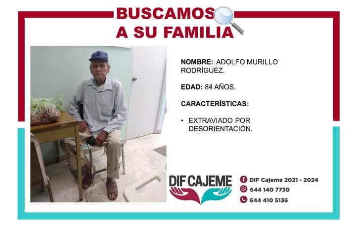 Se agradece cualquier información relacionada al señor Alfonso Murillo Rodríguez, de 84 años, el cual se encuentra desorientado y no recuerda donde vive.