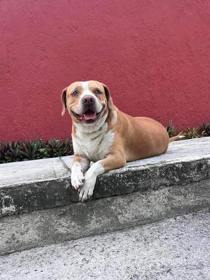 Indicó que fue abandonado pero doña Lupita lo rescató y adoptó, además le da todo tipo de cuidados como “atención veterinaria, alimento y cariños, con la finalidad de que se quede y sea un perro de casa”.