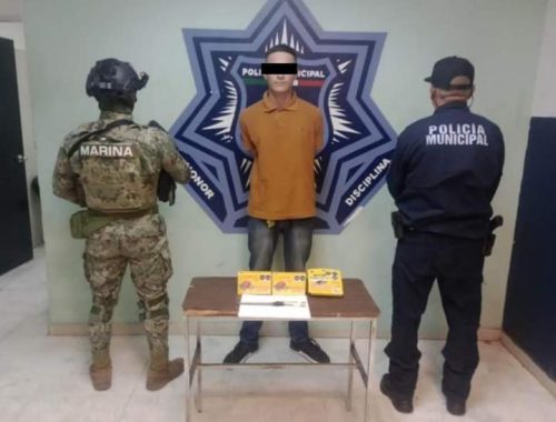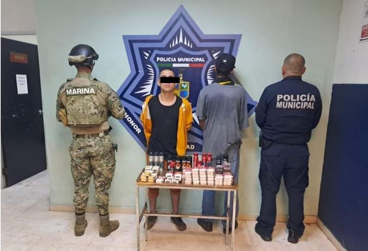 Tres personas del sexo masculino fueron capturadas por agentes de la Policía Municipal y Marina, lo anterior, tras atender dos reportes de emergencia canalizados por el C5i, donde se reportó robos en contra del sector comercio.