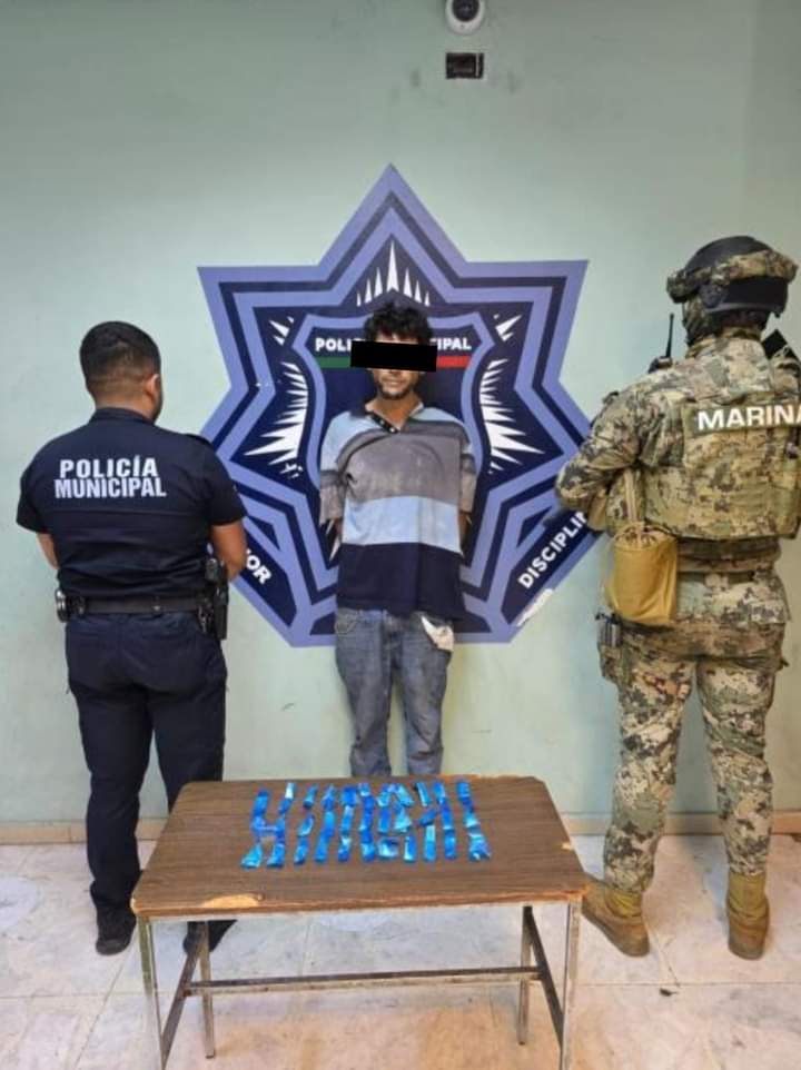 En barridos nocturnos de vigilancia oficiales de la Secretaría de Seguridad Pública Municipal, detuvieron a un hombre al sur de la ciudad, en la colonia Las Fuentes, asegurando diversos envoltorios de cristal.