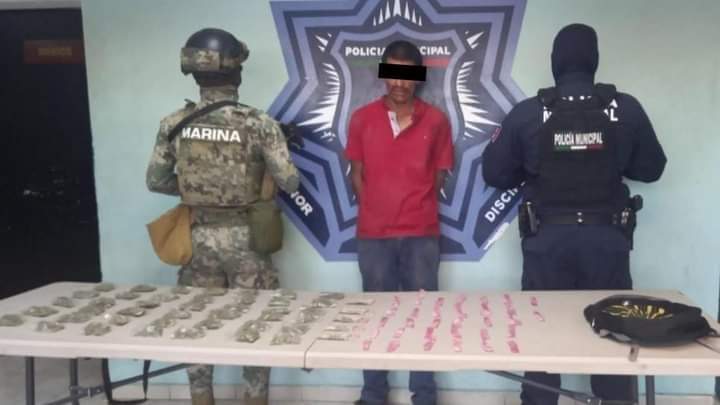 Más de 70 envoltorios de marihuana y cristal fueron asegurados durante un operativo conjunto entre elementos de la Secretaría de Seguridad Pública Municipal y Marina, lo anterior, como resultado de la captura de un presunto en la colonia el Campanario.