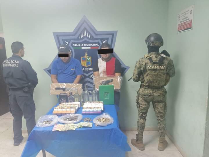 En flagrancia del delito fueron sorprendidos dos presuntos multi- asaltantes de tiendas de conveniencia, luego de que despojaran a empleados de un negocio ubicado en la Comisaría de Esperanza e intentaran darse a la fuga, no logrando su cometido gracias a la pronta acción de respuesta por parte de elementos de la Policía Preventiva, Tránsito y Marina.