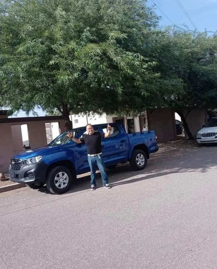 A través de redes sociales, el maestro Francisco Javier Gutiérrez Sierra, compartió el momento en qué llegó hasta su casa en la Infonavit Benito Juárez en Caborca, un pick up en color azul último modelo.