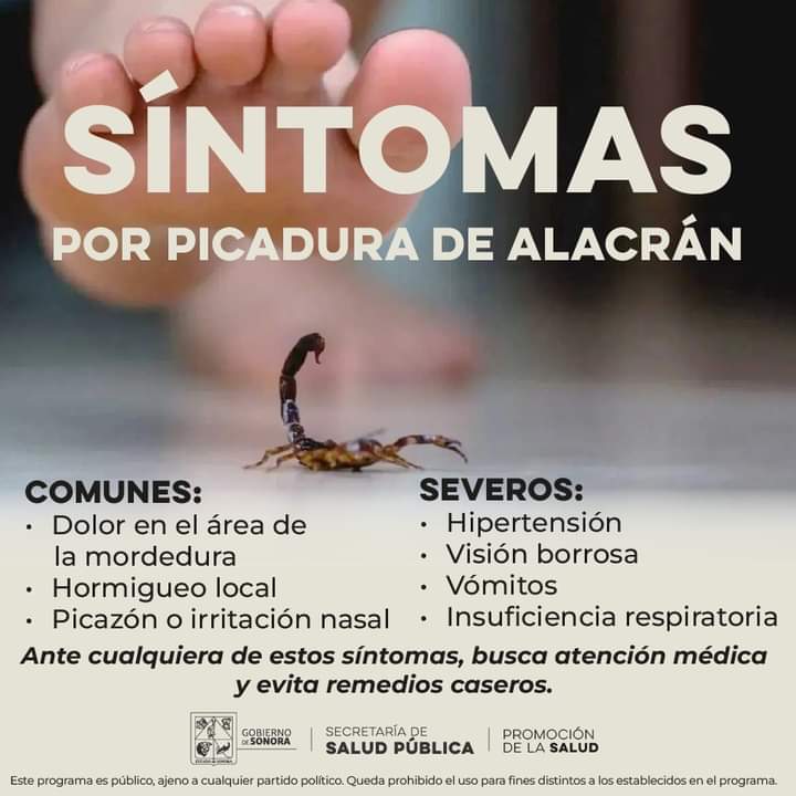 Ante cualquier síntoma como dolor, hormigueo o picazón en el área de la picadura, acude a tu unidad de salud más cercana