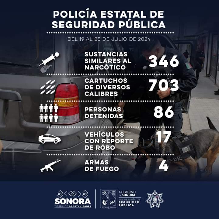 Oficiales de la Policía Estatal registraron estos aseguramientos principalmente en los operativos coordinados con los tres niveles de gobierno en los municipios de Hermosillo, Cajeme, Empalme, Benito Juárez, Mazocahui, Pitiquito, Benjamín Hill, San Luis Río Colorado, Caborca, Guaymas, Onavas y Moctezuma, entre otros.