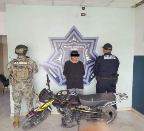 La primera captura se suscitó en el Valle del Yaqui, por la calle 800 entre 18 y 20, sitio en el que oficiales efectuaban recorridos preventivos, detectando a un motociclista conducir sin casco de seguridad y no portando placas, por lo que le efectuaron el alto, para después solicitarle la documentación de la unidad ligera, informando el conductor que no contaba con la reglamentación correspondiente.
