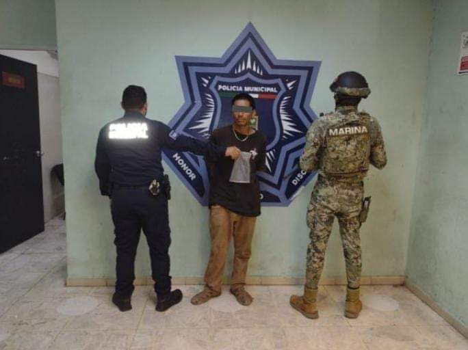 La detención ocurrió a través de los constantes barridos para la prevención del delito que implementa la Policía Municipal de manera coordinada con Marina, por la calle Sufragio esquina con No Reelección de mencionado sector.