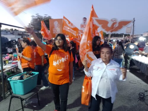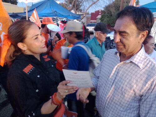 Cajeme,Son-. Éste pasado Lunes la candidata a la alcaldía de Cajeme por Movimiento Ciudadano Adriana Torres de la Huerta, acompañada de la fórmula naranja, visitaron a vecinos de la colonia villa bonita en ciudad Obregón en el tianguis del mencionado asentamiento.