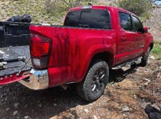 En las inmediaciones de Benjamín Hill fueron asegurados un vehículo Toyota, tipo Tacoma, color rojo con reporte de robo en Estados Unidos y un vehículo Ram color blanco con reporte de robo, dos armas de fuego largas tipo fusil AK 47 calibre 7.62 x 39 mm, dos armas de fuego largas tipo fusil calibre 5.56 mm, 18 cargadores para cartuchos calibre 7.62 x 39 mm, dos cargadores para cartuchos calibre 223 mm, un aditamento lanza granadas calibre .40, una granada útil calibre .40 y 255 cartuchos del calibre 7.62 x 39 mm.