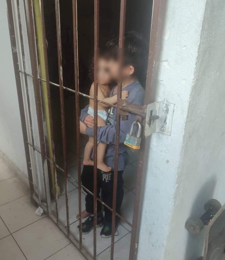 La triste historia ocurrió cuando una oportuna vecina llamó al número de emergencia debido a que observó que un niño de 8 añitos permanecía en compañía de su hermanita de 8 meses encerrados detrás de un barandal y con un candado en una casa de la colonia Camino Real.