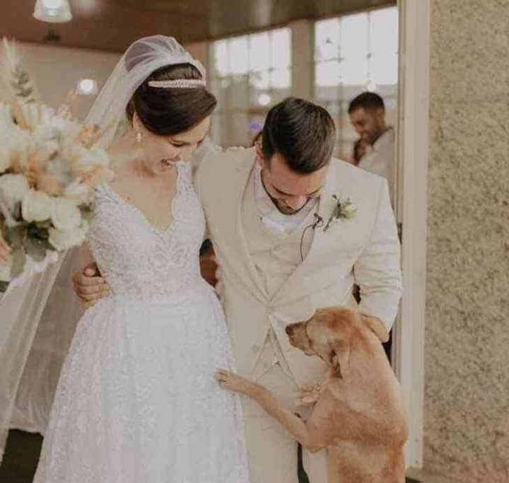 Del baúl… Cuando los brasileños Douglas Robert y Tamíris Muzini salieron de su boda, se encontraron con el nuevo integrante de su familia: un peludito que residía en las calles.