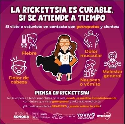 Hermosillo, Sonora; 12 de junio de 2024.- La rickettsiosis es una enfermedad altamente mortal, por lo que la Secretaría de Salud (SSA) recomendó a la población mantener casas, patios y mascotas limpias y libres de garrapatas, así como procurar que estén desparasitadas y cuenten con su vacuna antirrábica vigente.