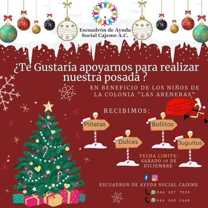 ESCUADRÓN DE AYUDA SOCIAL CAJEME A. C. INVITA A LA REALIZACIÓN DE UNA POSADA EN BENEFICIO DE LOS NIÑOS DE LA COLONIA «LAS ARENERAS»