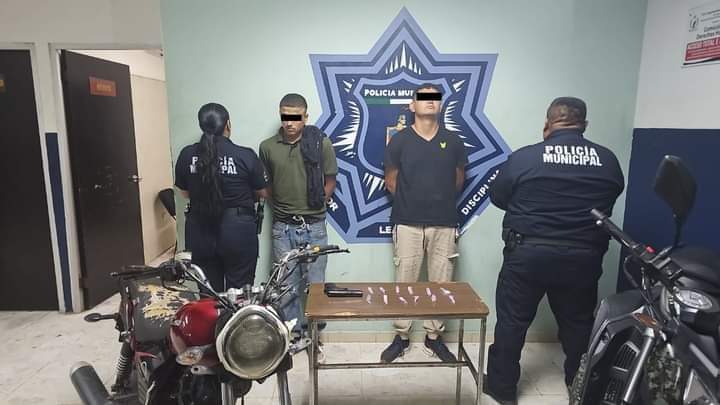 Tras la detención se les efectuó una revisión corporal localizándoles una réplica de arma de fuego corta y 12 envoltorios de un narcótico, asimismo, se procedió con el aseguramiento de dos vehículos ligeros en los que se transportaban, siendo dos Italikas Z250 color negro y TC-150 roja con negro, ambas sin placas de circulación.