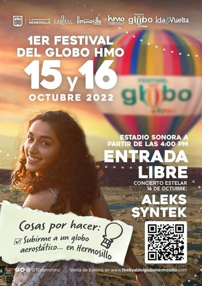 Este 15 y 16 de octubre se realizará el Festival del Globo en la capital sonorense, donde los asistentes podrán disfrutar de vuelos libres o anclados en globo aerostático, un concierto gratuito estelar de Aleks Syntek y otras atracciones.