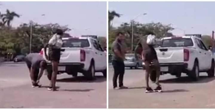 En el video captado por una persona que transitaba por la zona, se observa cómo uno de los sujetos se quita los tenis que traía puestos, y se los entrega al indigente, quien caminaba descalzo sobre el pavimento, en una ciudad donde el calor ha rebasado los 40 grados centígrados en los últimos días.
