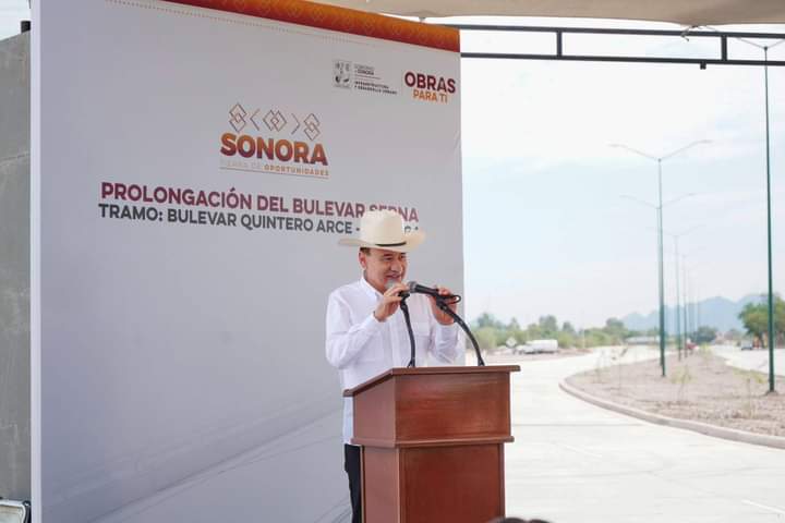 Hermosillo, Sonora; 10 de octubre de 2024.- Con el propósito de mejorar la organización vehicular y calidad de vida de los habitantes del sector poniente de Hermosillo, el gobernador Alfonso Durazo Montaño inauguró la obra de prolongación del bulevar Serna del tramo bulevar Quintero Arce y Quiroga, para la que se destinó una inversión cercana a los 50 millones de pesos.