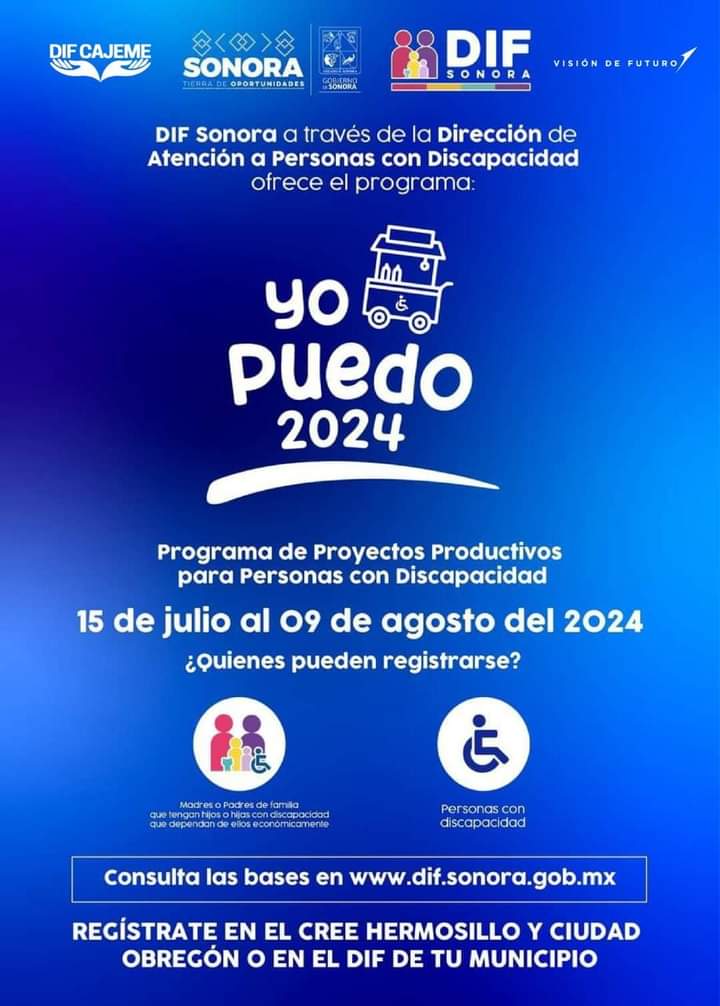 DIF Cajeme a través de DIF Sonora da arranque al Programa “Yo Puedo 2024”, iniciativa de Proyectos Productivos destinada a grupos prioritarios como lo son personas con discapacidad, así como a madres y padres de familia que tengan hijas o hijos con discapacidad y que dependan económicamente de ellos.