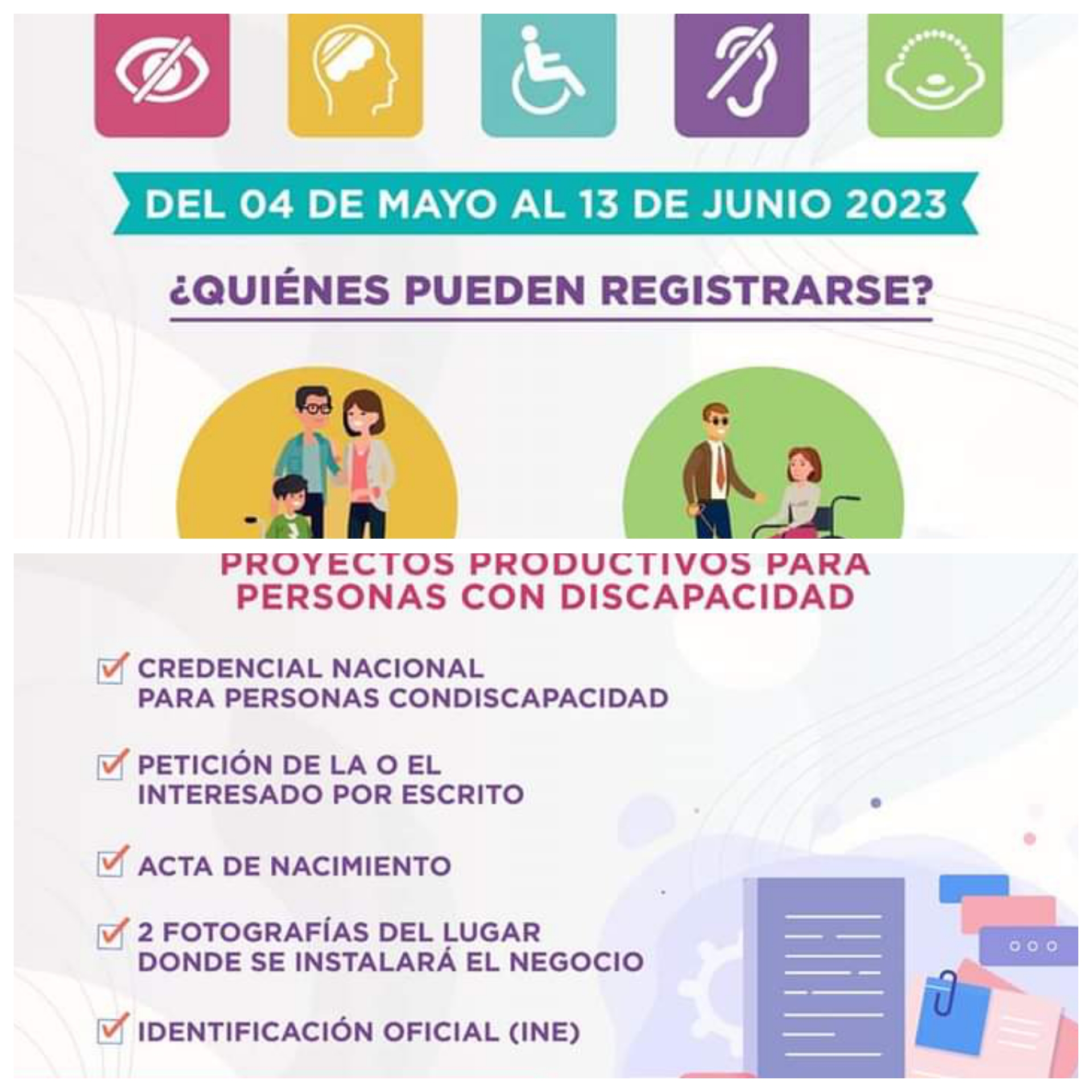 Personas con discapacidad, así como madres o padres de familia que tengan hijos con discapacidad que dependan económicamente de ellos, tienen para registrarse hasta el 13 de junio en las oficinas DIF Cajeme, horario de atención de lunes a viernes, de 8 am a 3 pm.