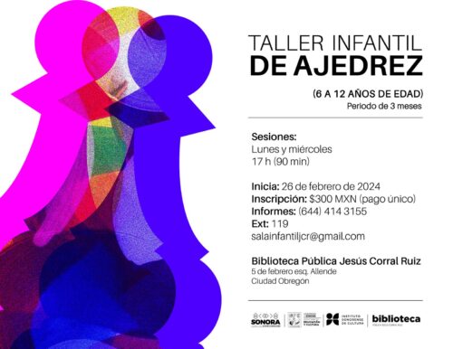 Cajeme,Son-.Éste próximo 26 de Febrero dará inicio el taller infantil de ajedréz abierto para niños de 6 a 12 años en un periodo de 3 meses, en las instalaciones de biblioteca pública en ciudad Obregón.