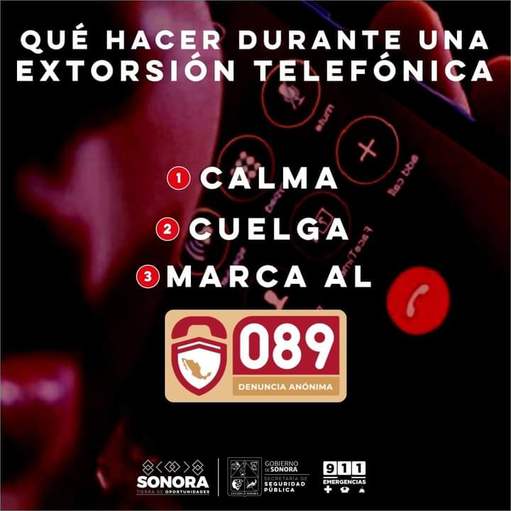 Ante una posible llamada de extorsión, la dependencia recomendó colgar inmediatamente, comprobar la información y reportar el hecho en el número de emergencias 9-1-1 o denunciar en forma anónima al número 089.