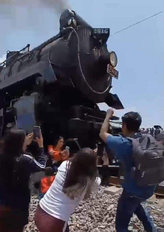FaIIece mujer por imprudencia, trató de tomarse una ‘selfie’ frente a la locomotora 2816 en Nopala de Villagrán, Hidalgo.