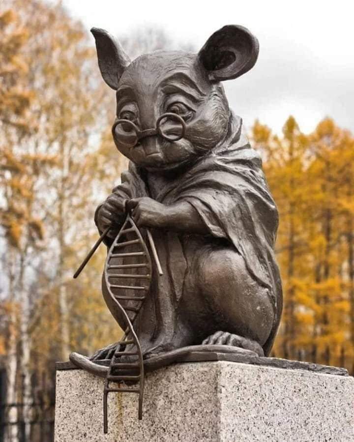 Escultura ubicada frente al Instituto de Citología y Genética de la Academia de Ciencias Rusas.
