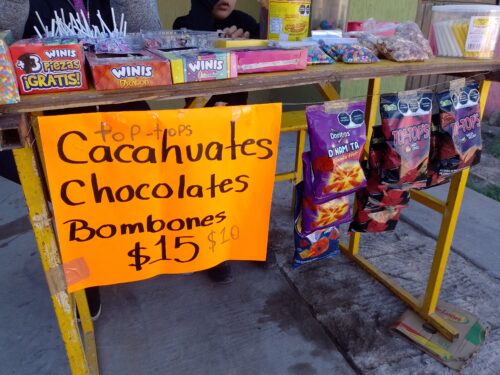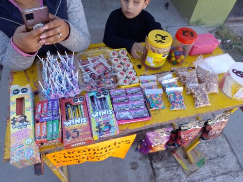 Alyson vende dulces tales como: mazapanes, chocolates, chicles, cacahuetes, Sabritas entre muchas cosas más.