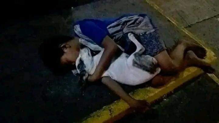 En las fotos se pudo apreciar al niño, descalzo y vestido con un short y camisa de manga corta, abrazado a un perro, dormido entre sus brazos. Ambos durmieron ante la indiferencia de los peatones, que al pasar solo les dedicaron una mirada.