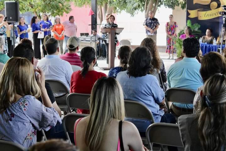 En el marco del 25 aniversario de fundación del plantel, María Dolores del Río, secretaria de Seguridad Pública estatal, reiteró su compromiso de trabajar coordinadamente con autoridades del centro educativo más grande del estado, que supera los mil estudiantes en los tunos matutino y vespertino, para la generación de entornos seguros.