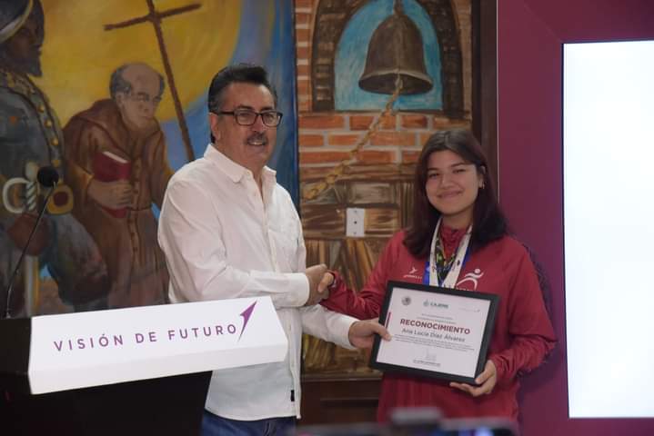 Durante la sesión del programa Diálogo con Cajeme, el Presidente Municipal, Javier Lamarque Cano entregó un reconocimiento público a Ana Lucia Díaz Álvarez, por haber conquistado la Medalla de Oro en los Juegos CONADE 2023, donde puso en alto el nombre de Cajeme y de Sonora al resultar campeona nacional en la categoría Junior Femenil, obteniendo, además, su pase para representar a México en el torneo internacional de la Youth League, a celebrarse del 20 al 25 de septiembre en Mérida, Yucatán.