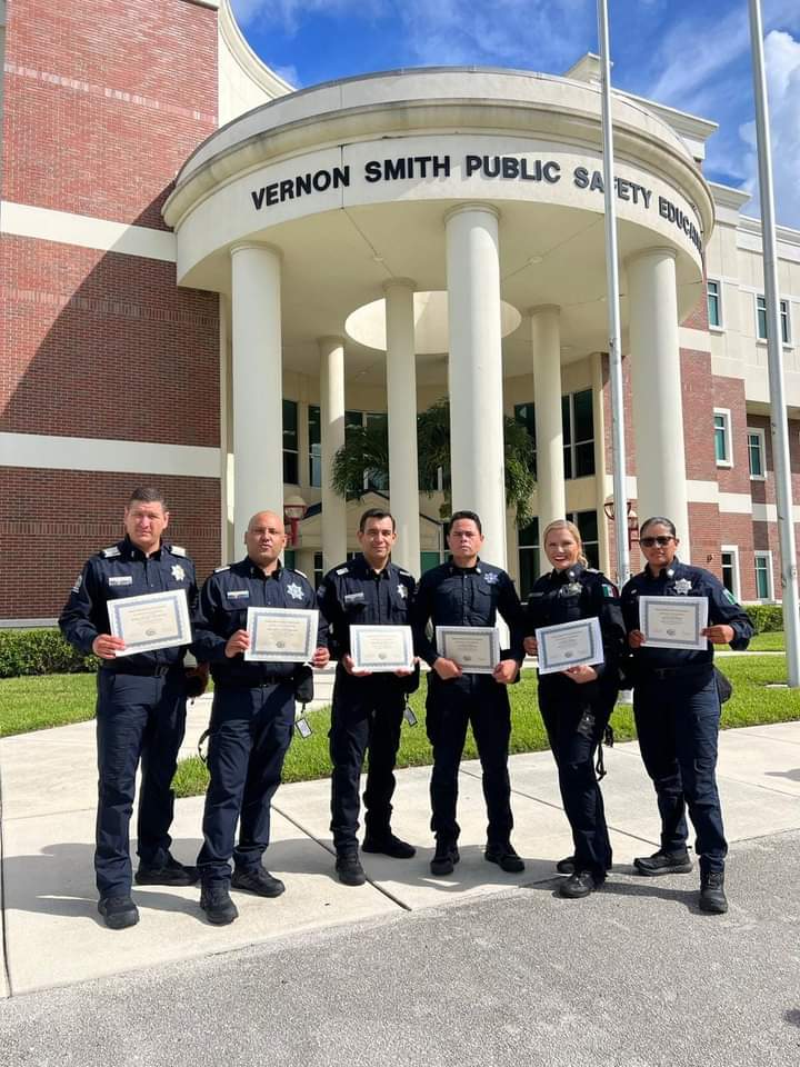 Durante 15 días expuso, las y los oficiales se entrenaron en las instalaciones de Indian River State College junto a policías de Michoacán, Campeche, Sinaloa, Nuevo León y Baja California, acumulando un total de 80 horas de capacitación.