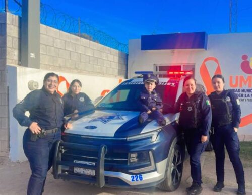 Llego una madre de familia con un menor que festejaba sus 3 añitos, el menor Luis Fernando Valdez Rodríguez se encontraba muy emocionado abordo de la unidad con su uniforme de policía.