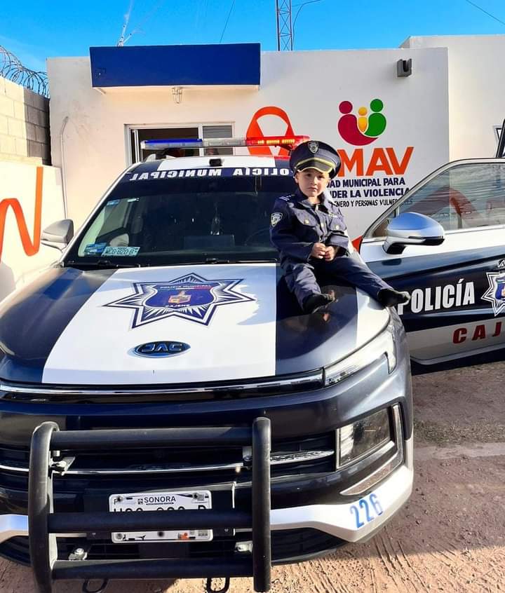 Llego una madre de familia con un menor que festejaba sus 3 añitos, el menor Luis Fernando Valdez Rodríguez se encontraba muy emocionado abordo de la unidad con su uniforme de policía.