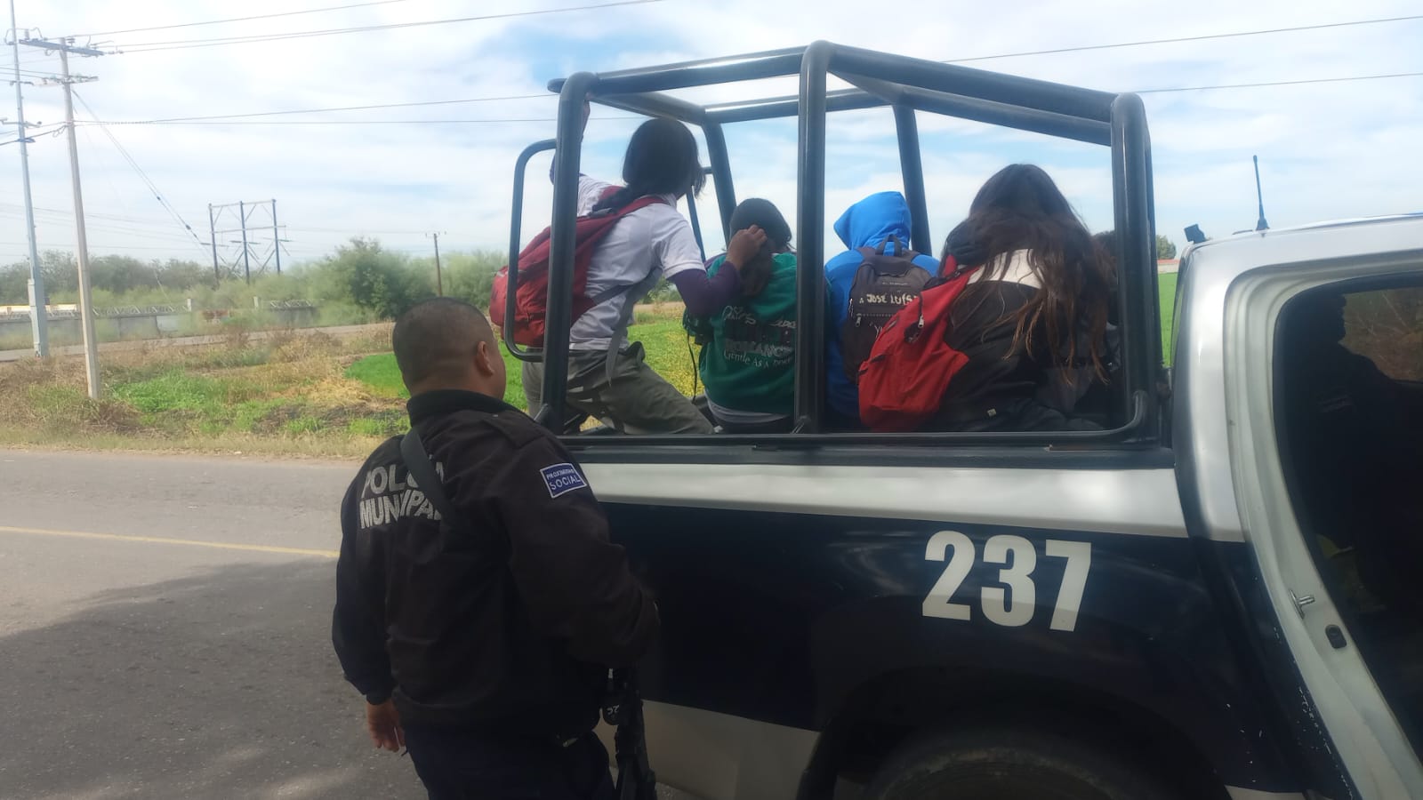 Por parte de la ciudadanía, nos envian esta imagen de el Valle del Yaqui, donde se observa como agentes de la Policía Municipal apoyan con traslado hacia su escuela a jóvenes estudiantes.