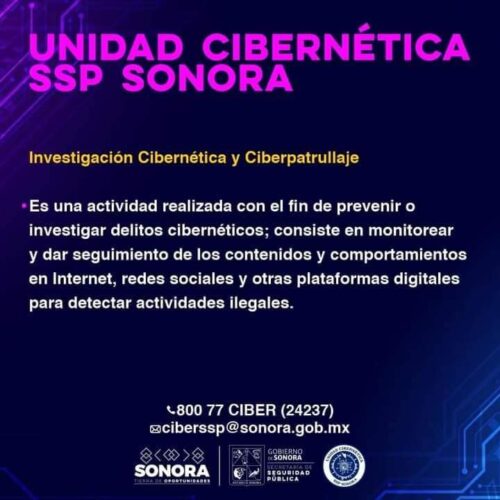 De forma paralela dijo, la investigación cibernética y ciberpatrullaje son tareas que llevan a cabo con el fin de prevenir o investigar delitos cibernéticos y consiste en monitorear y dar seguimiento de los contenidos, comportamientos en internet, redes sociales y otras plataformas digitales para detectar actividades ilegales.