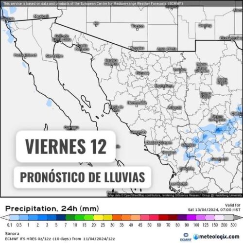 Hermosillo, Sonora a 12 de abril de 2024.- *viernes*, basándose en la valoración y análisis de la información meteorológica en general y con base en información del Servicio Meteorológico Nacional (SMN) y diferentes fuentes oficiales de los Estados Unidos, la Coordinación Estatal de Protección Civil emite el siguiente pronóstico: