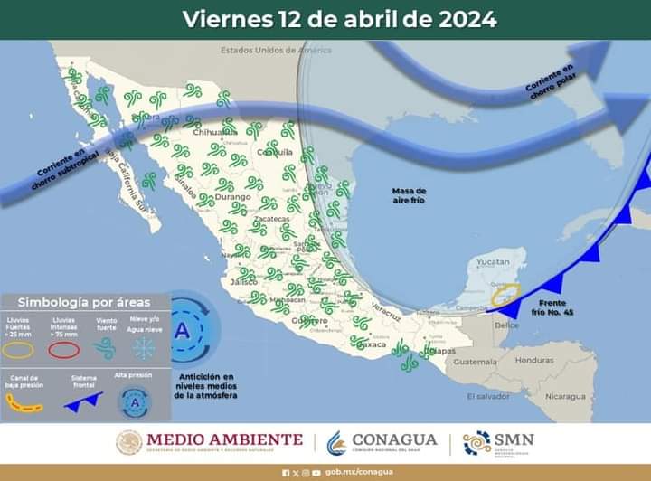 Hermosillo, Sonora a 12 de abril de 2024.- *viernes*, basándose en la valoración y análisis de la información meteorológica en general y con base en información del Servicio Meteorológico Nacional (SMN) y diferentes fuentes oficiales de los Estados Unidos, la Coordinación Estatal de Protección Civil emite el siguiente pronóstico: