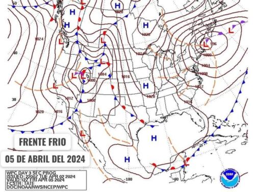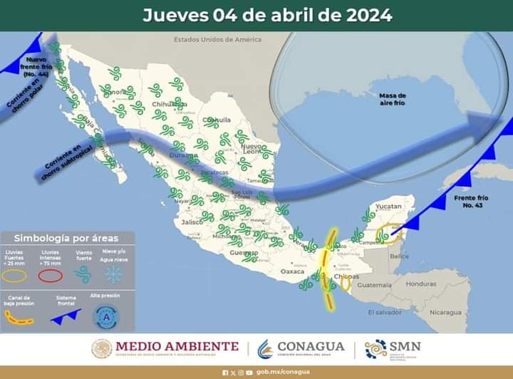 Se pronostica la aproximación de un nuevo *frente frío* para el día sábado 06 de abril, el cuál pudiera ocasionar un ligero descenso en las temperaturas máximas y ráfagas de viento de hasta 70 km/h.