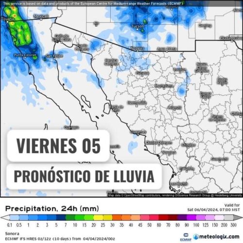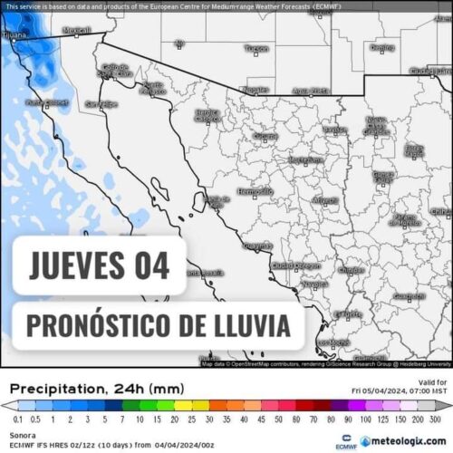 Hermosillo, Sonora a 04 de abril de 2024.- *jueves*, basándose en la valoración y análisis de la información meteorológica en general y con base en información del Servicio Meteorológico Nacional (SMN) y diferentes fuentes oficiales de los Estados Unidos, la Coordinación Estatal de Protección Civil emite el siguiente pronóstico: